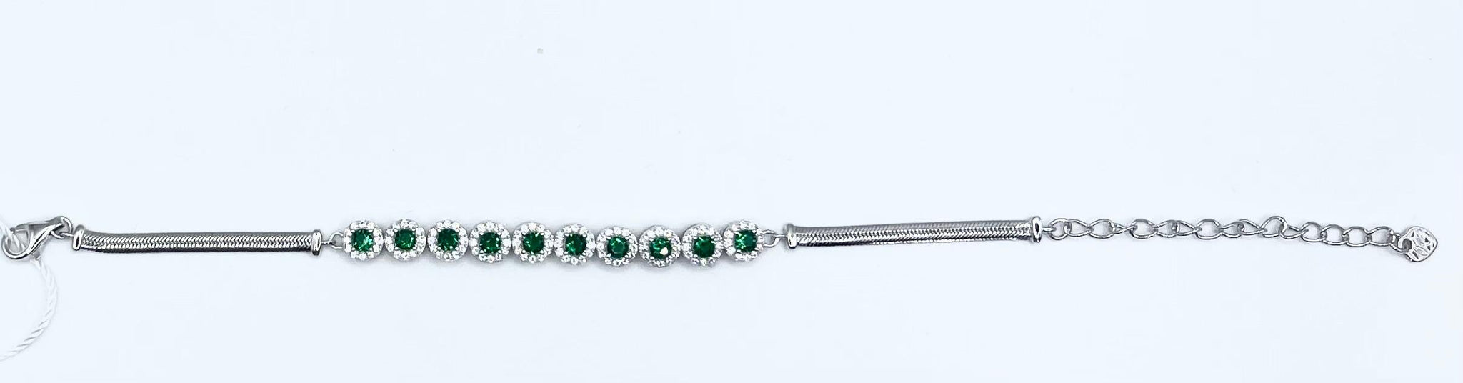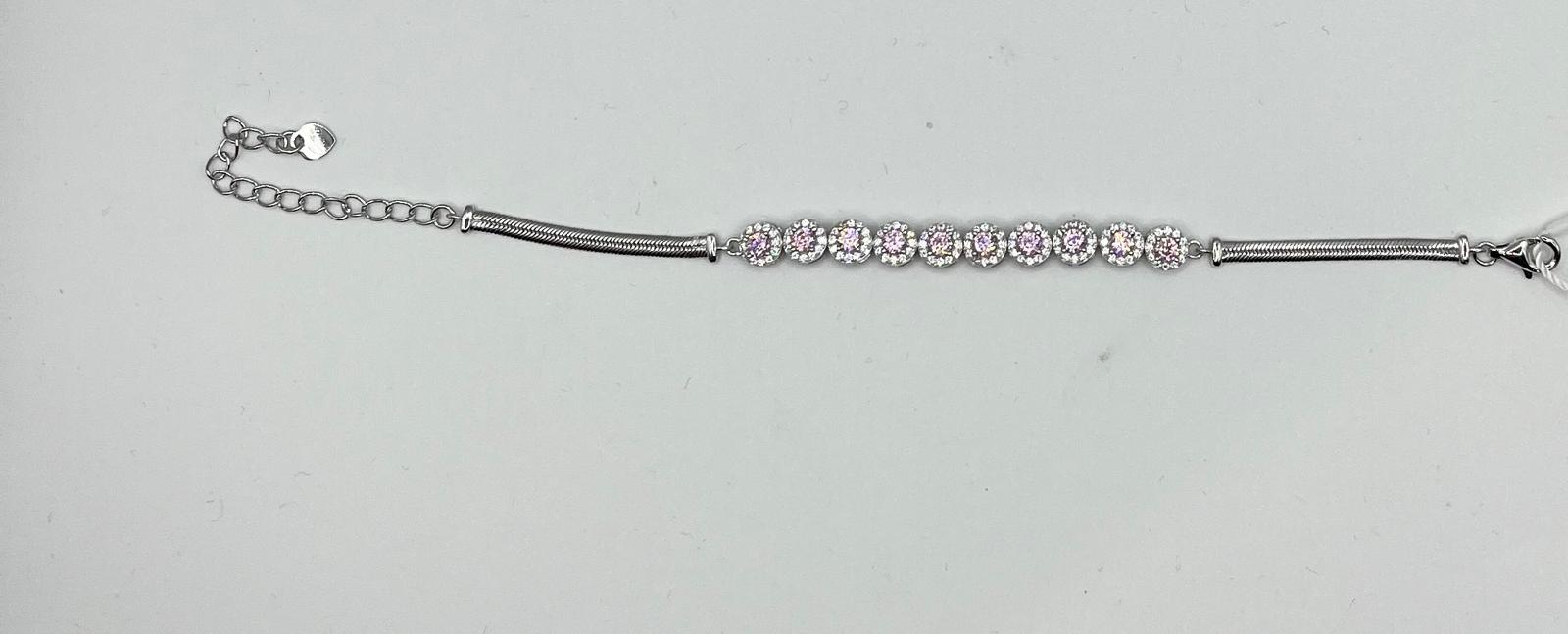 Bracciale in argento 925 con zircone rosa, turchese, bianco e verde.