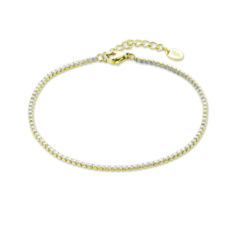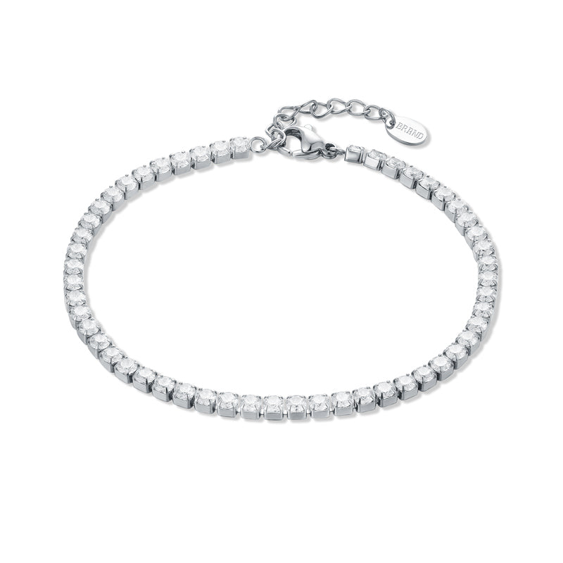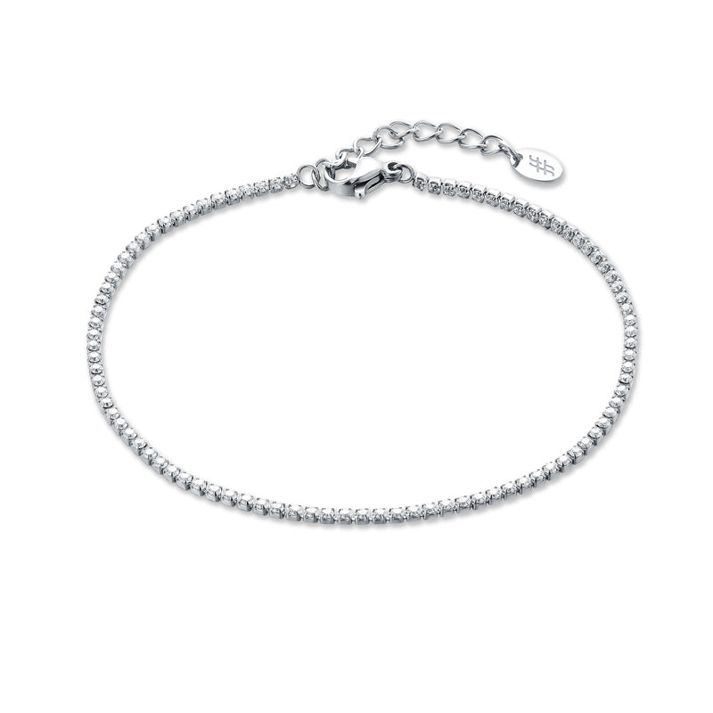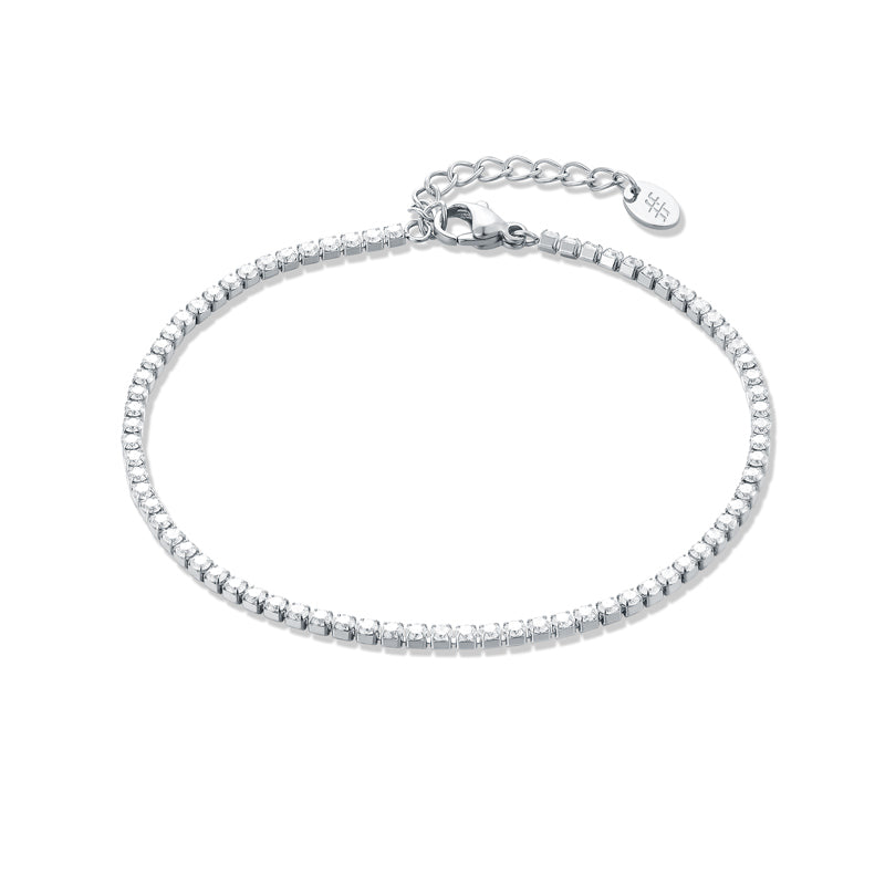 Bracciale Uomo Tennis Cristalli Bianco, con Cristalli incastonati in micro-setting. Bracciale in acciaio disponibile nella galvanica oro e argento e in differenti dimensioni di pietra: