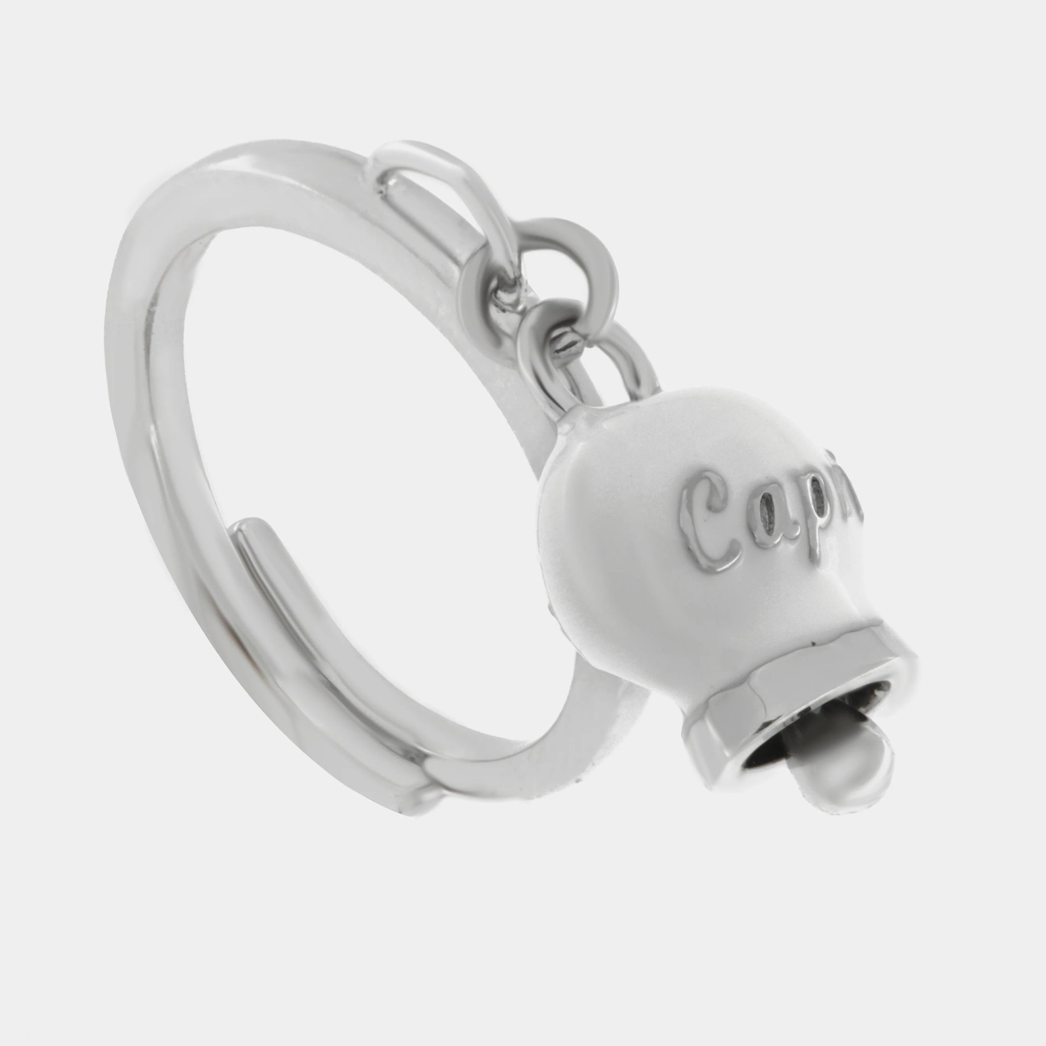 Anello in Acciaio con campanella pendente bianca con scritta Capri