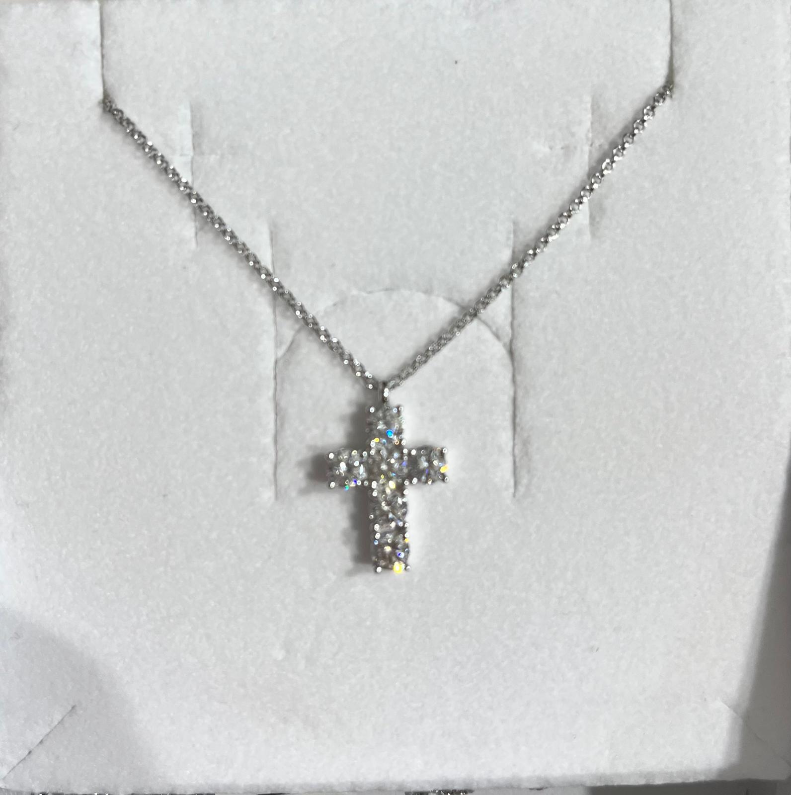 Collana in argento 925, con pendente a forma di croce, con zirconi, la croce è disponibile in cinque colori: Rosa, fucsia , azzurro e oro e bianca, blu
