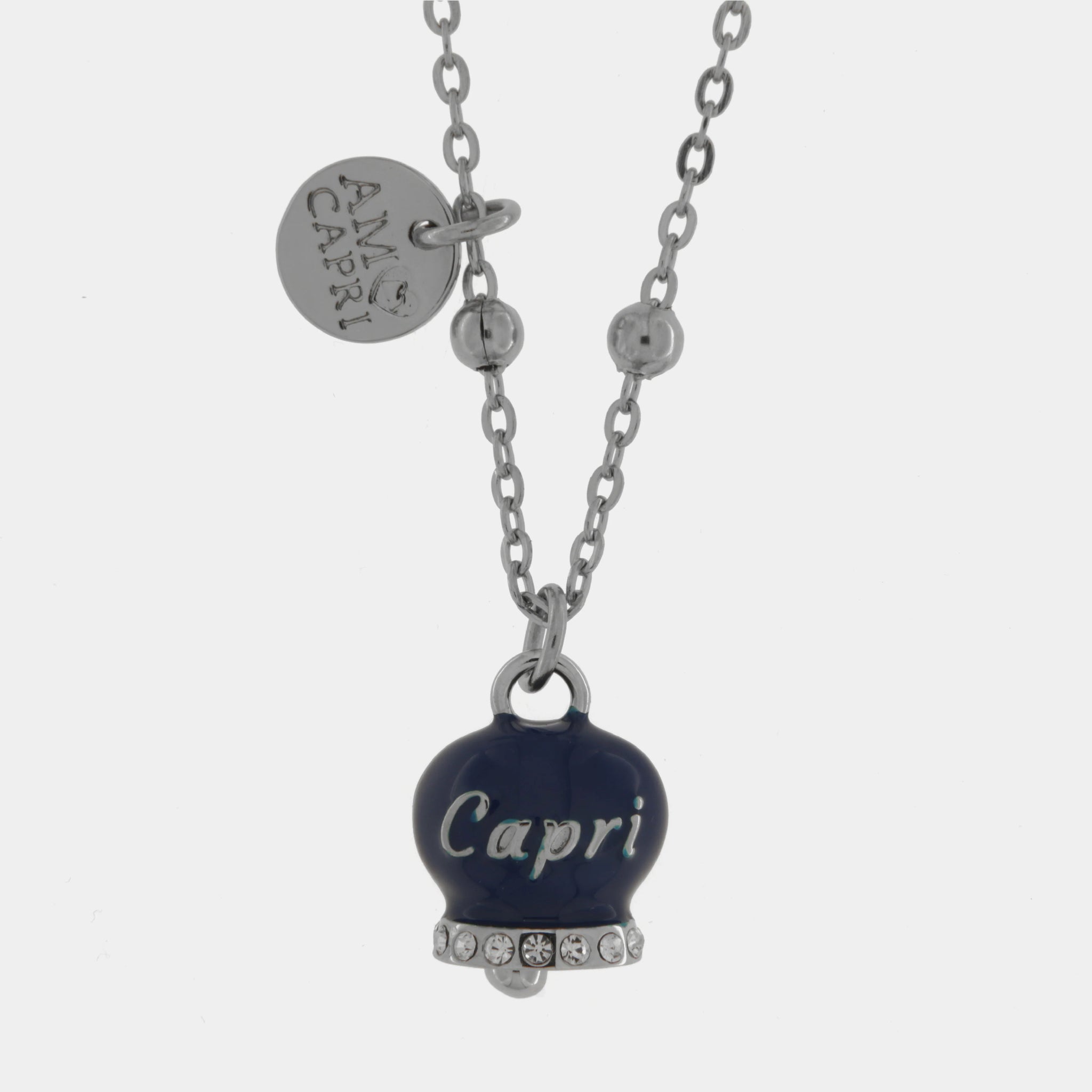 Collana in Acciaio con campanella pendente blu con scritta Capri