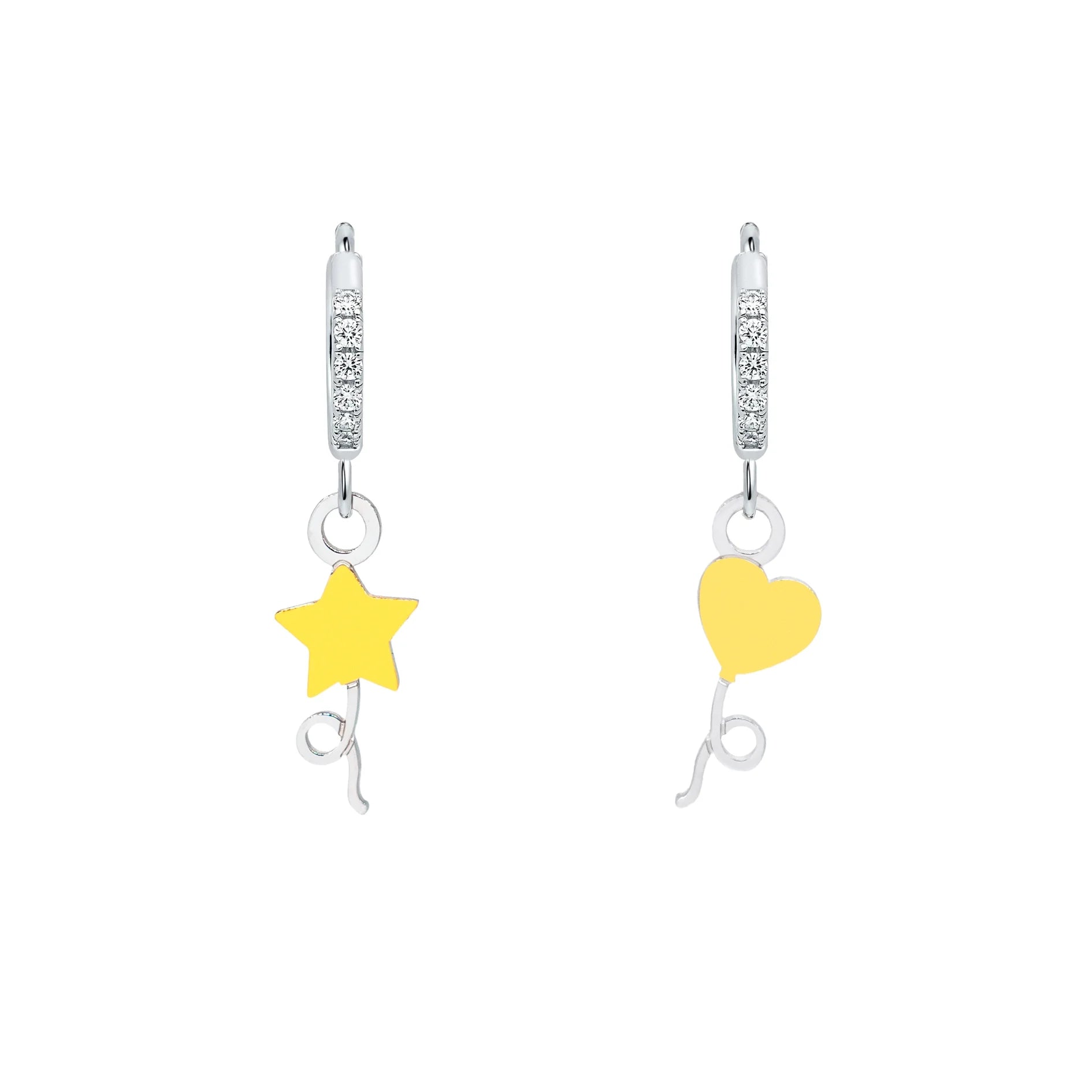 Questi orecchini, con un palloncino a forma di stella e uno a forma di cuore, sono un invito a credere nei propri sogni.